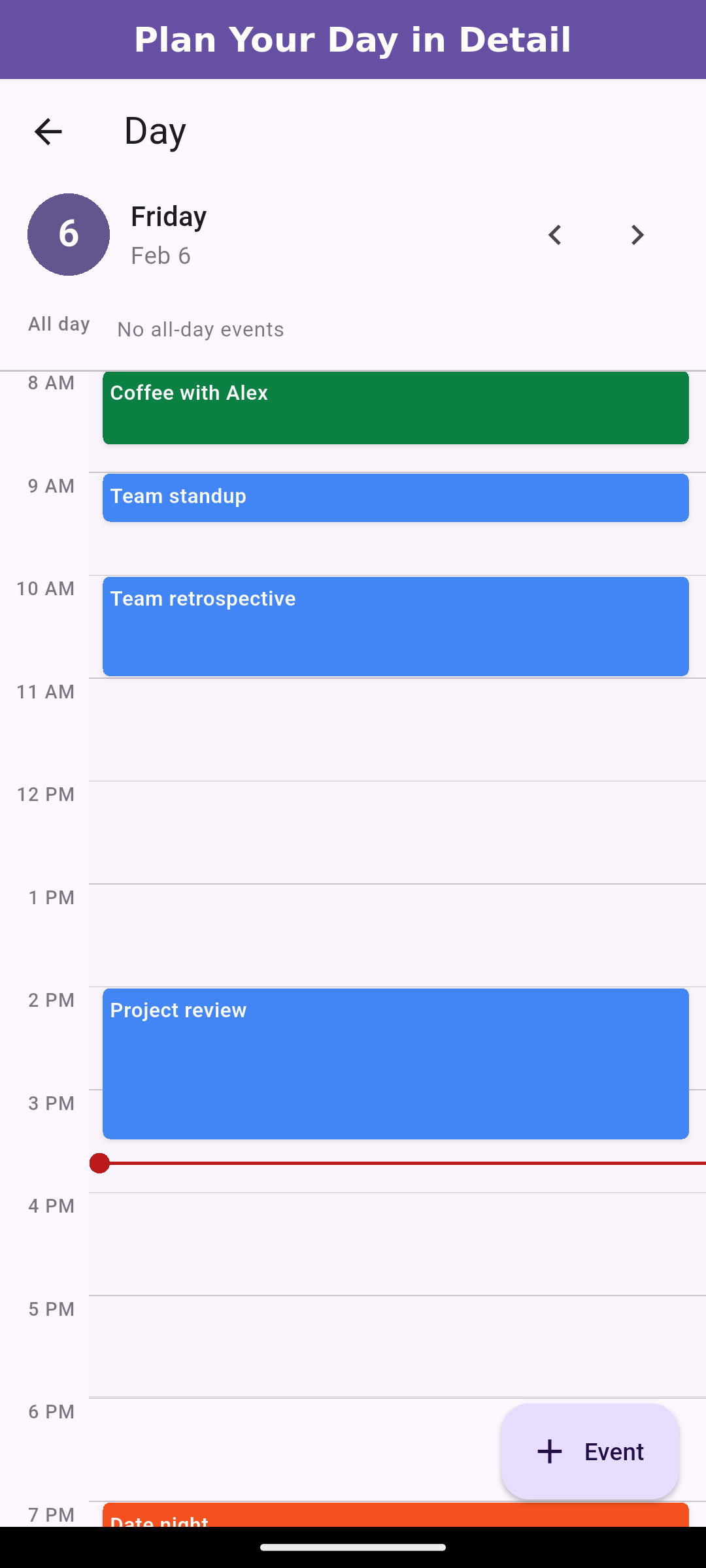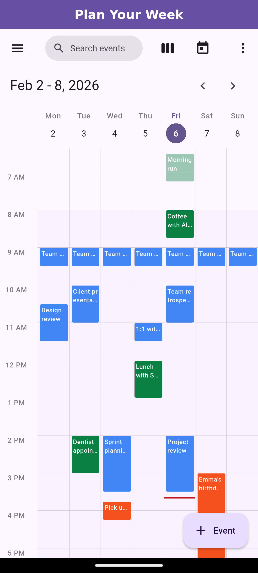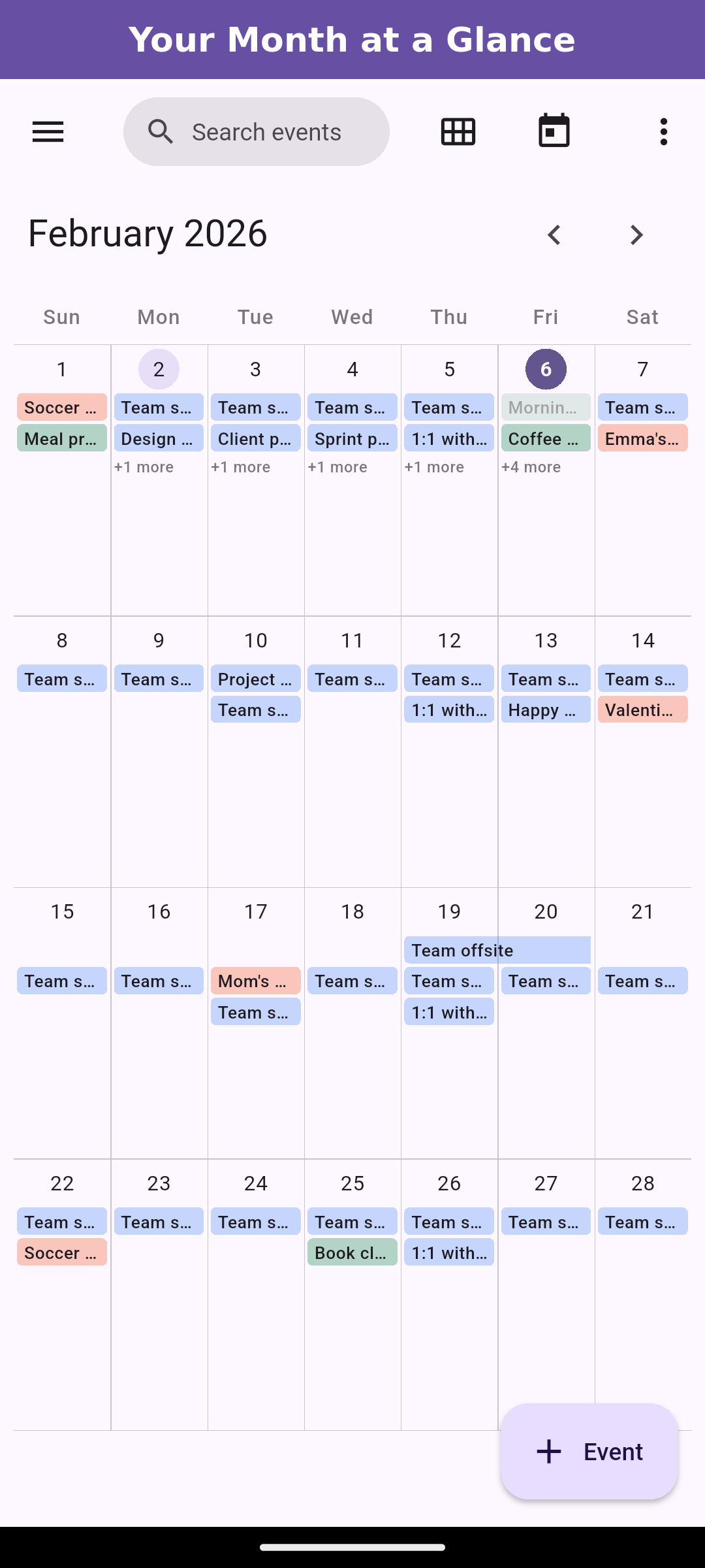 Your calendar loads instantly, even without internet. Changes sync when you're back online.